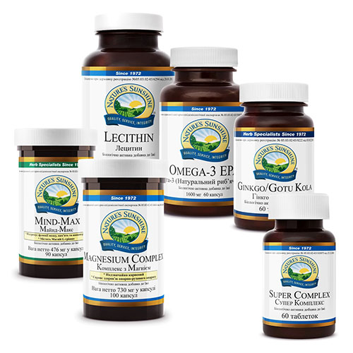 Входящие в состав набора продукты, улучшают работоспособность клеток головного мозга. Витамины поддерживают обмен веществ в нейронах и нейроглии (вспомогательные клетки нервной ткани; составляют около 40% объёма ЦНС), способствуют выработке энергии, обеспечивая работоспособность клеток головного мозга. Тиамин улучшает память, настроение, мышление и работоспособность клеток мозга. Рибофлавин также улучшает память, а также устойчивость к стрессу.Ниацин снимает утомление, обостряет восприятие информации. Пантотеновая кислота и пиридоксин обеспечивают устойчивость к стрессу, а пиридоксин также улучшает память, настроение, мышление, снижает утомляемость при длительных нагрузках. Фолиевая кислота обеспечивает и кратковременную и долговременную память, ускоряет процесс мышления, а также эффективно снимает депрессию. Витамин Е и β-каротин снижают чрезмерную возбудимость, снижая риск эпилепсии.Лецитин и Омега-3 ПНЖК относятся к числу наиболее важных мембранопротекторов – они входят в структуру биологических мембран клеток нервной ткани головного мозга. Магний способствует наиболее быстрому преодолению стресса, нервных перегрузок, оказывает седативное действие.Его недостаток приводит к головным болям, хронической усталости, депрессии, судорогам. Входящие в состав Майнд Макса и Гинкго Готу Колы фитоингредиенты являются эффективными капилляропротекторами, снимают спазм, расширяют кровеносные сосуды, улучшая мозговое кровообращение и доставку кислорода к нейронам. Одновременно они ускоряют мышление, улучшают память и концентрацию внимания.